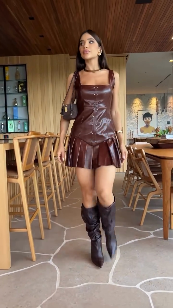 Brown Faux Leather Corset Mini Dress