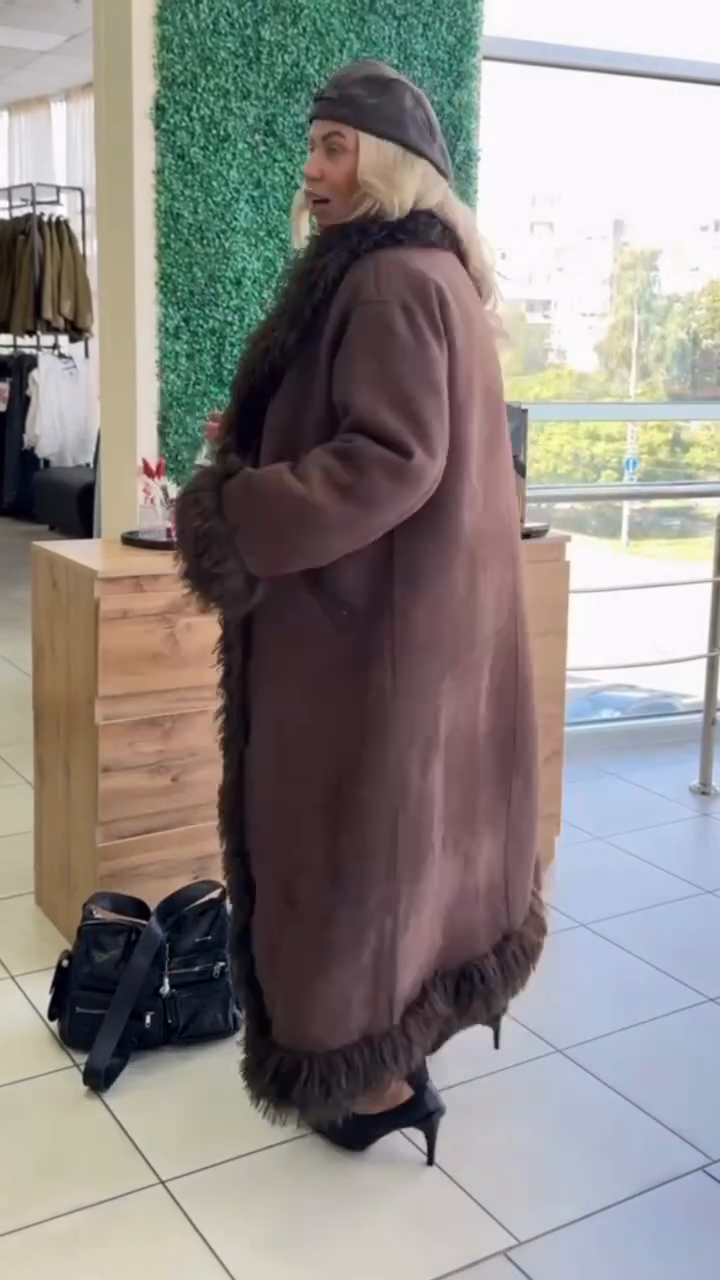 Brown Fur - Trimmed Long Coat