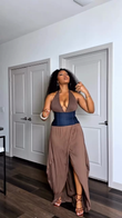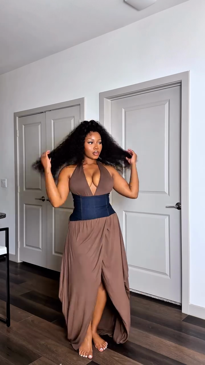 Brown Halter Maxi Dress with Corset Detail