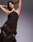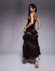 Brown Halter Neck Tiered Maxi Dress with Gold Detailing