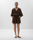 Brown Linen Short - Sleeve Shirt & Shorts Set