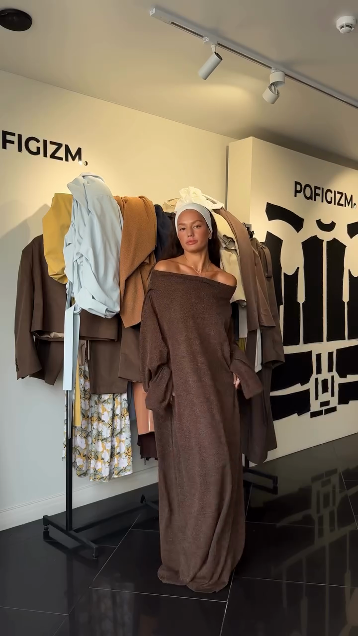 Brown Off - Shoulder Maxi Dress