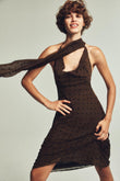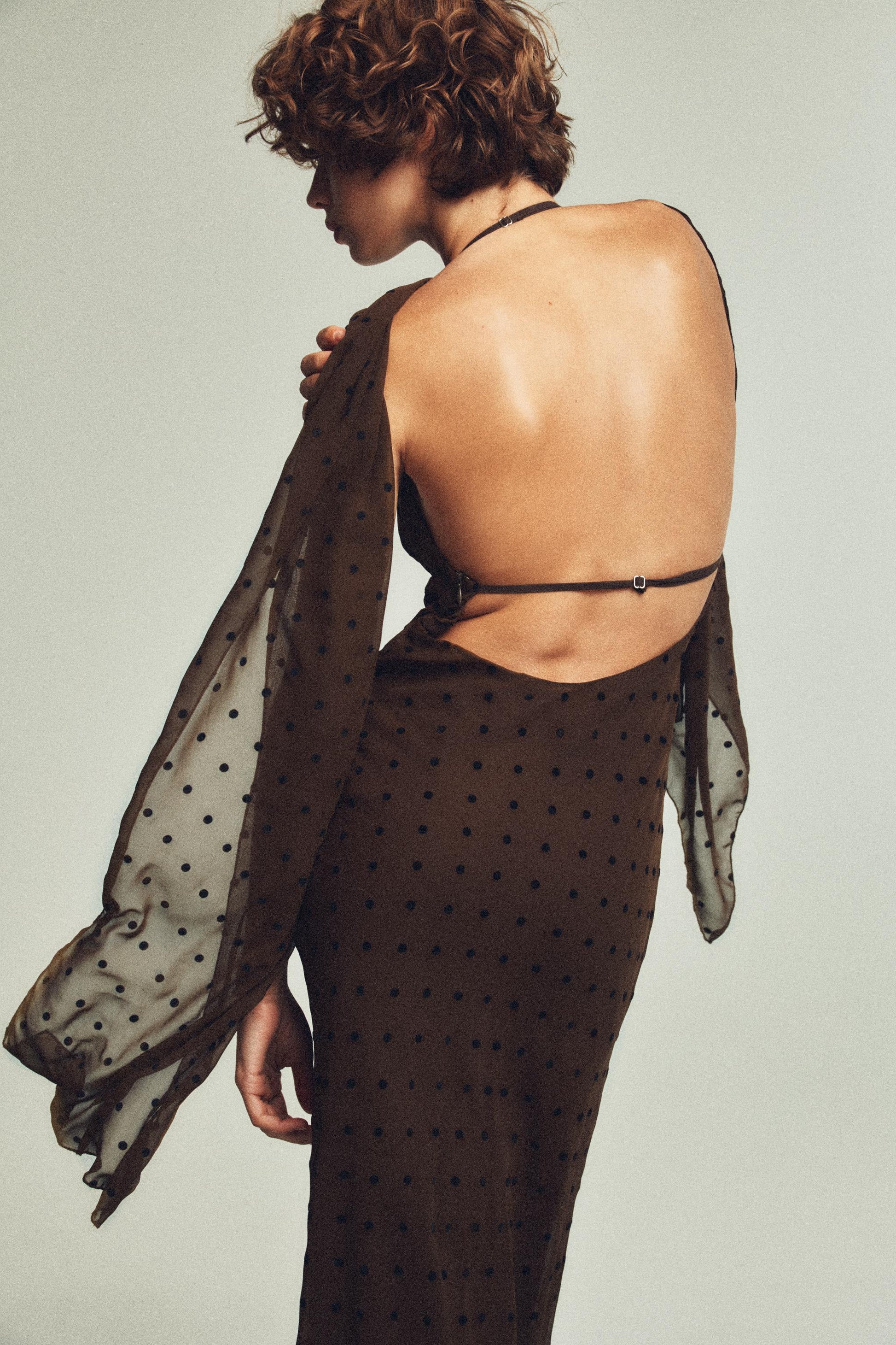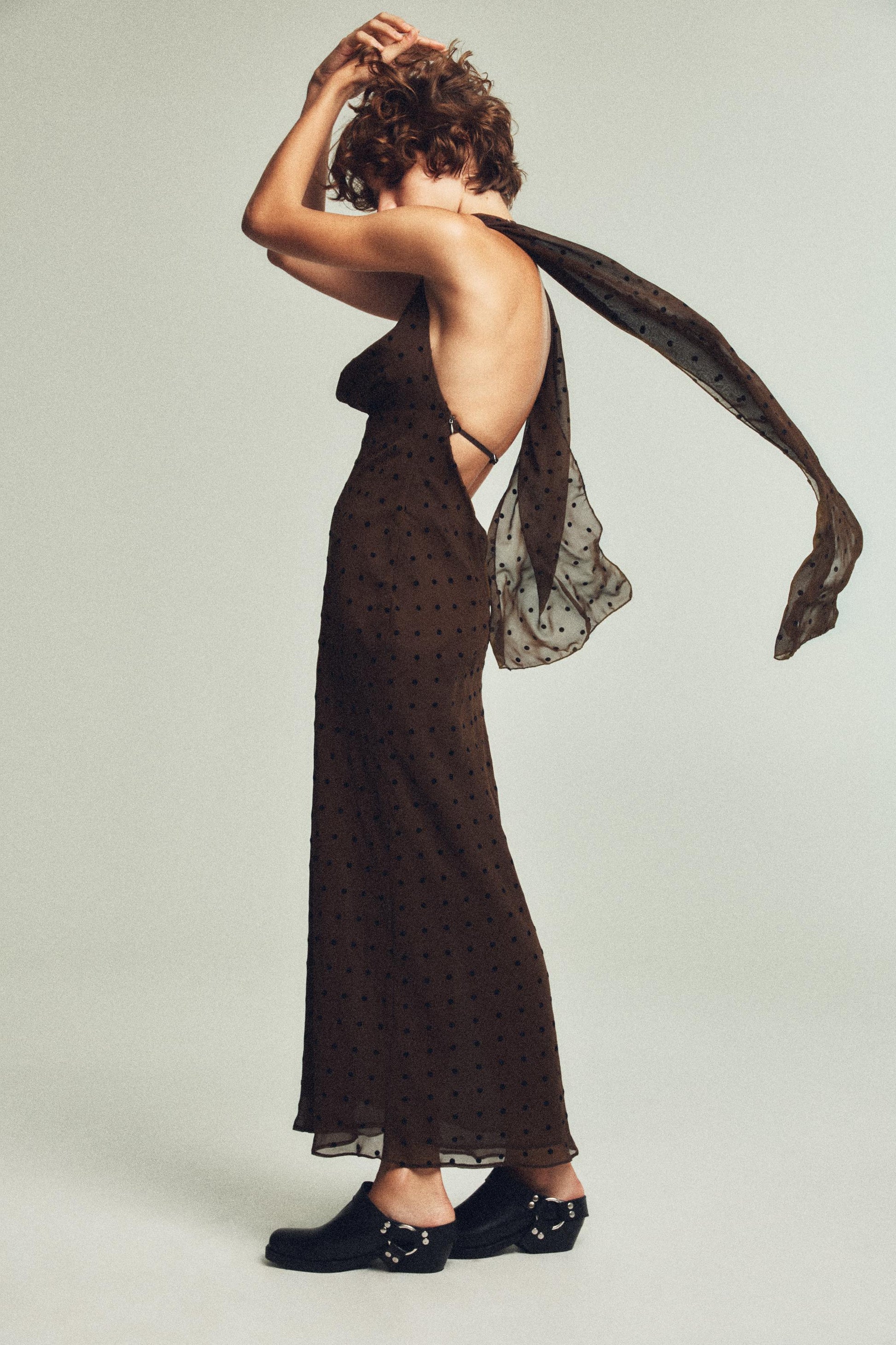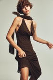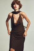 Brown Polka Dot Halter Maxi Dress with Scarf Detail