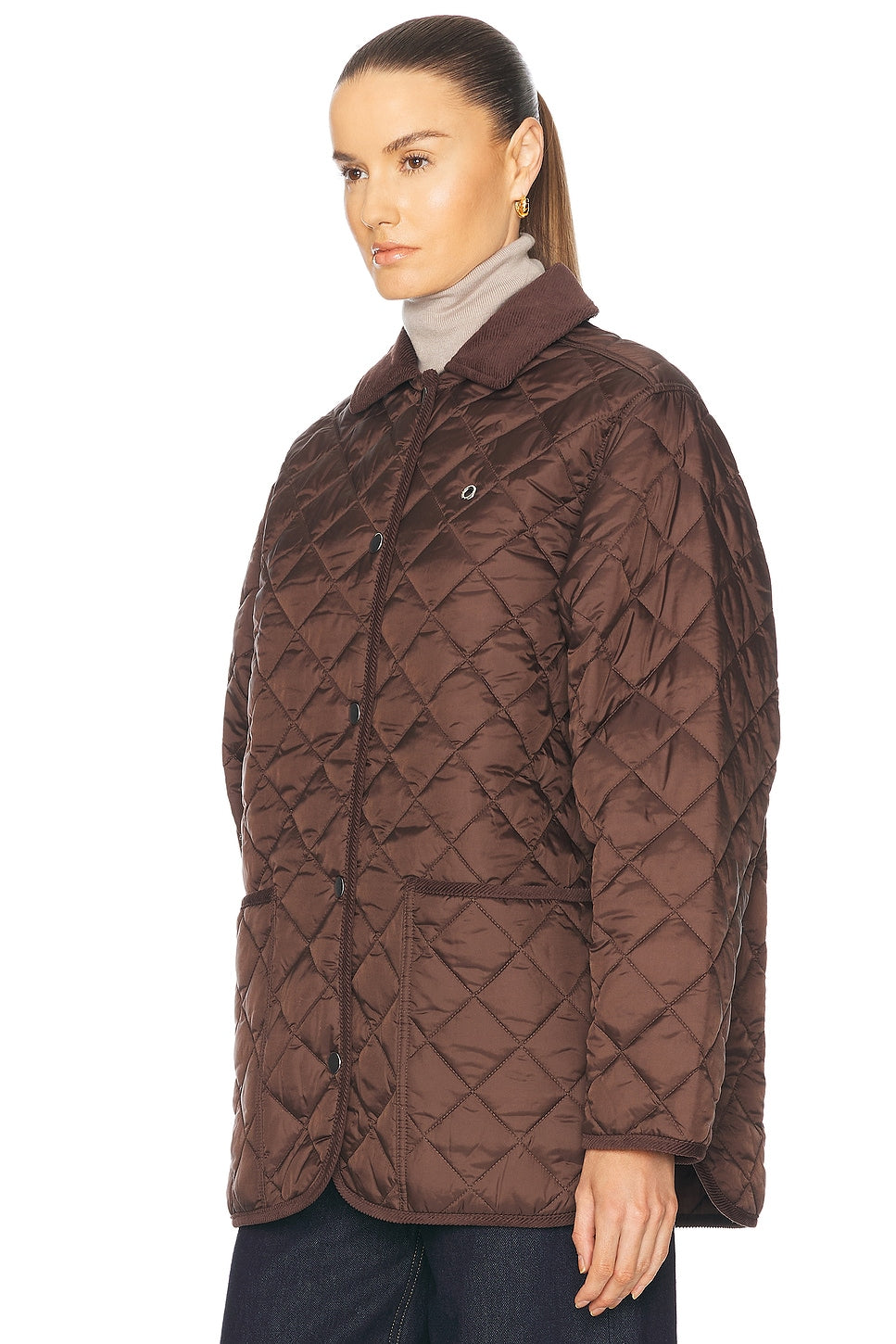 Brown Quilted Jacket with Corduroy Collar