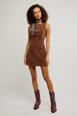 Stand out in this Brown Suede Cut - Out Back Mini Dress. The unique back cut - out design adds an edgy, stylish touch. Perfect for nights out or fashion - forward events. Lightweight fabric ensures fast page load. Shop now for a bold, chic look!