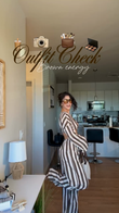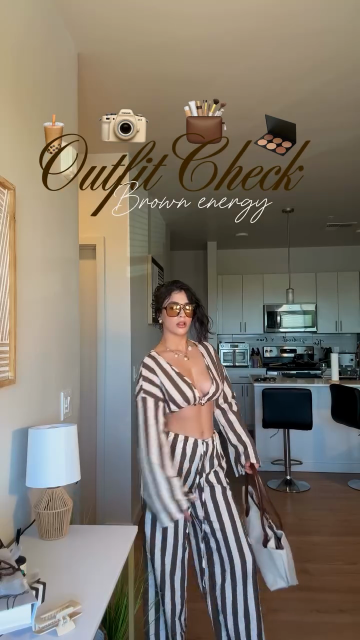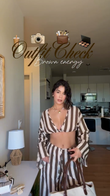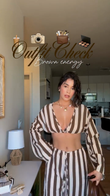 Brown - White Striped Crop Top & Pants Set