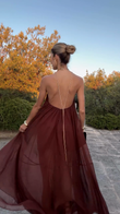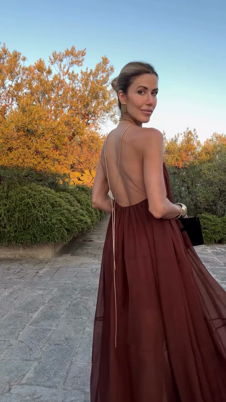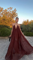 Burgundy Halter V - neck Chiffon Maxi Dress