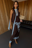 Chocolate Brown Maxi Dress with Light Blue Lace Detailing