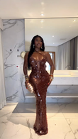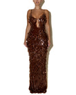 Chocolate Brown Sequin One - Shoulder Maxi Dress