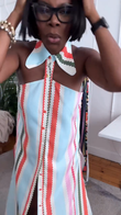 Color - blocked Striped Halter Maxi Dress