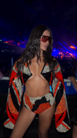 Colorblock Diamond Long Sleeve Cropped Top and Skirt Set