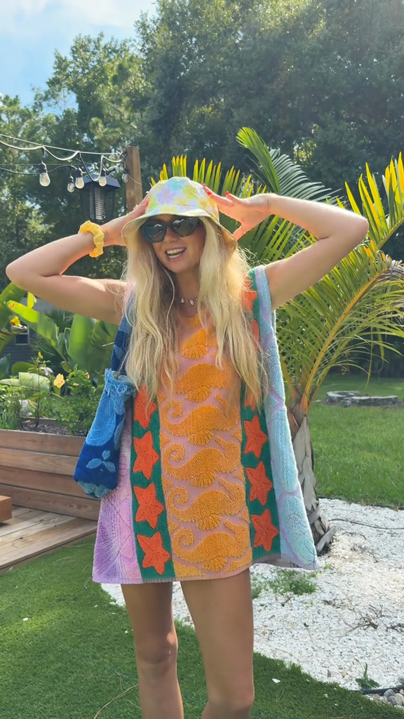 Stand out in this vibrant Colorful Embroidered Terry Cloth Dress. Featuring bold patterns and a playful design, it’s perfect for sunny days. Lightweight terry cloth ensures comfort. Pair with a hat for a complete summer look. Shop now for a fun, beachy vibe!
