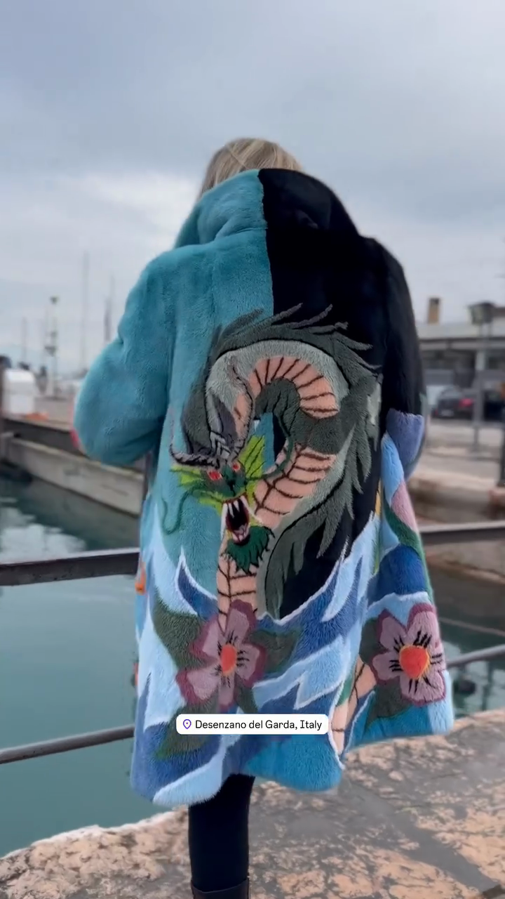 Colorful Floral - Printed Fur Coat
