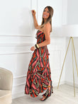 Colorful Striped Off-the-shoulder Top and Long Skirt Set