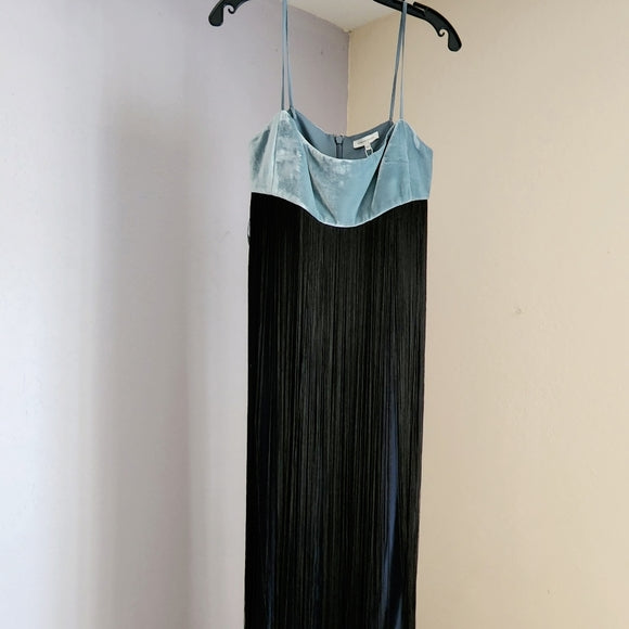 Contrast Panel Fringe Midi Dress