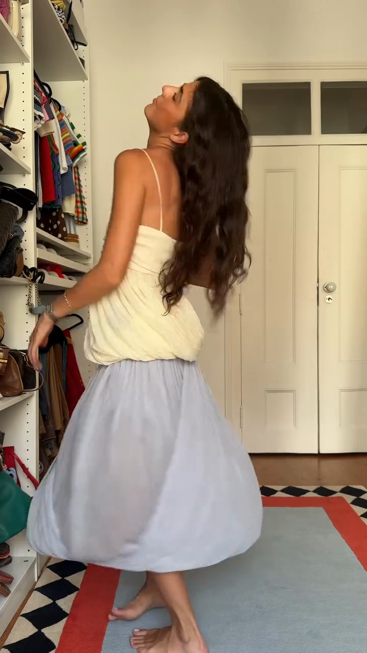 Cream Cami Top and Light Gray Pleated Skirt Set