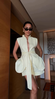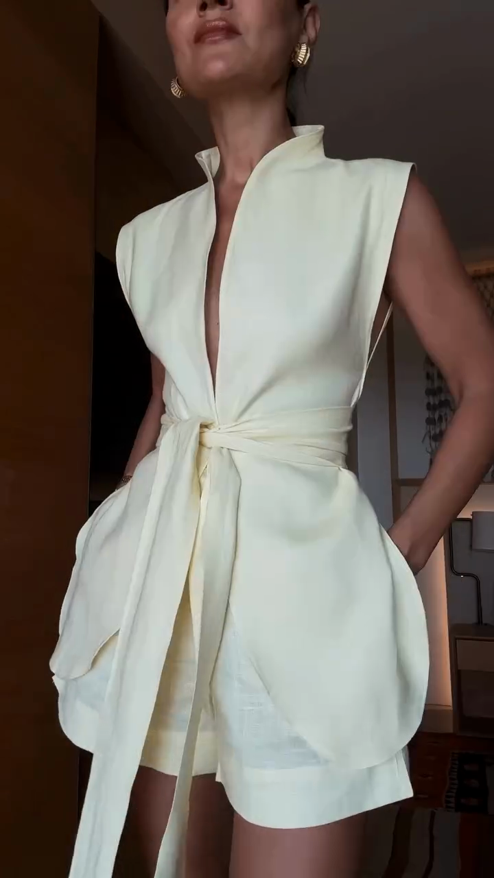 Cream Deep V Neck Sleeveless Top and Shorts Set