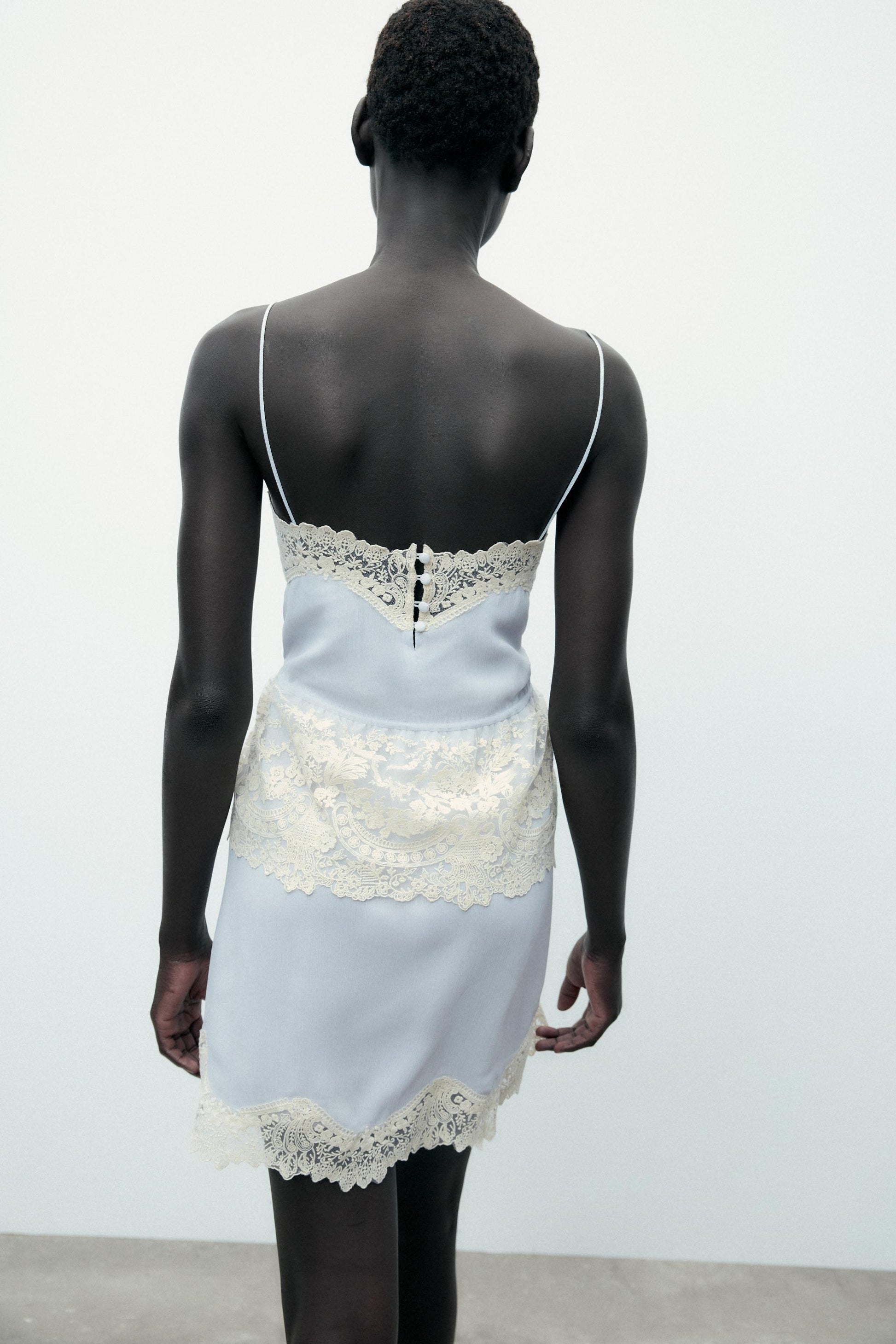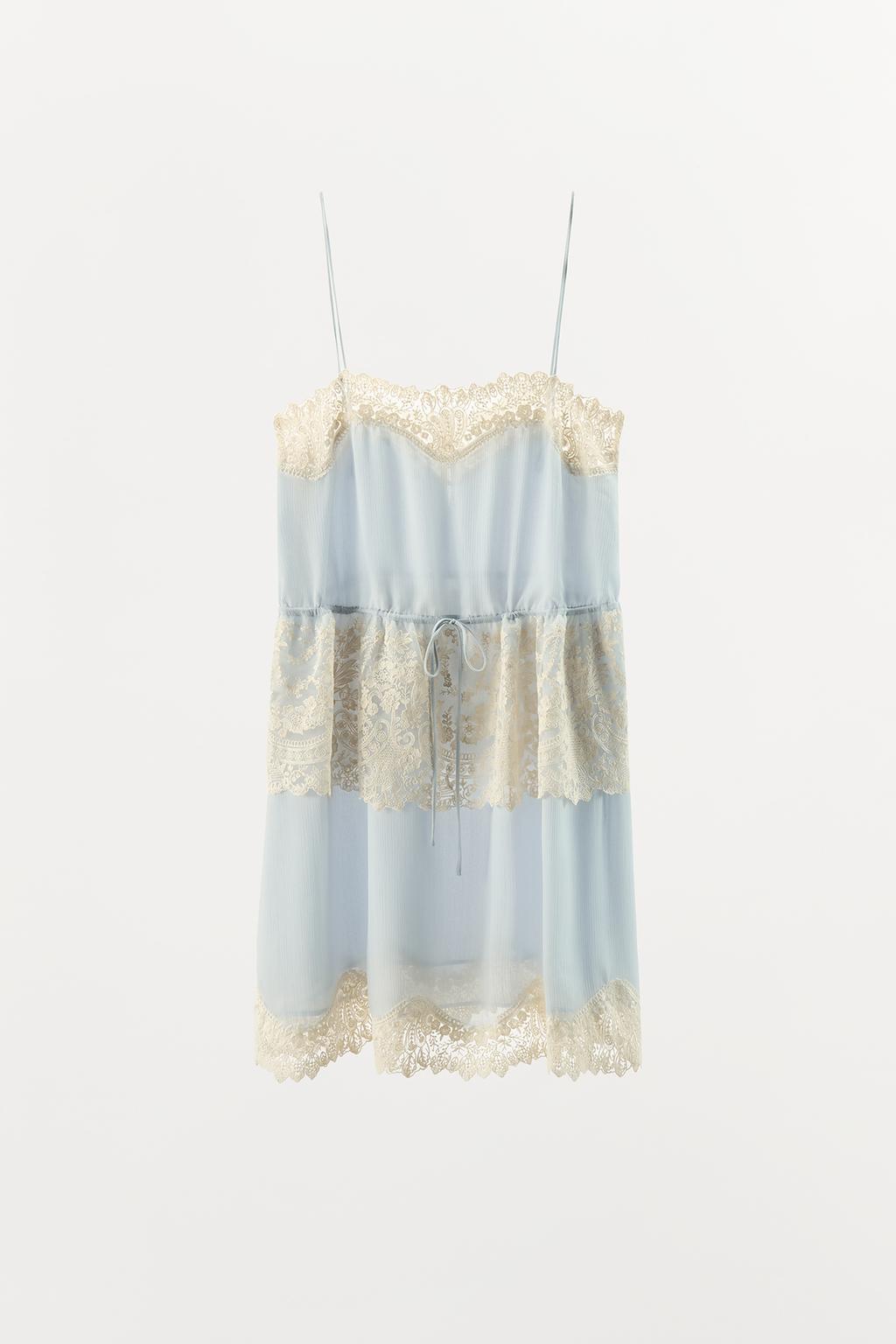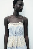Cream Lace Trim Light Blue Multi-Layer Dress