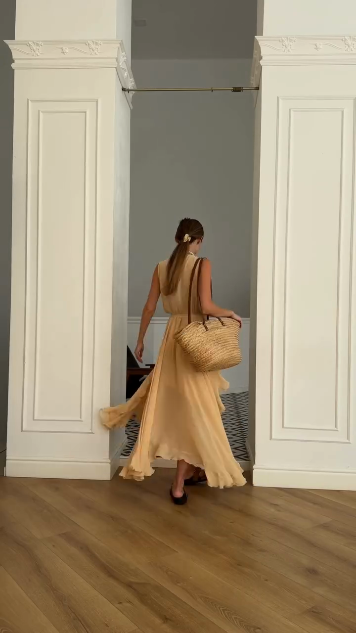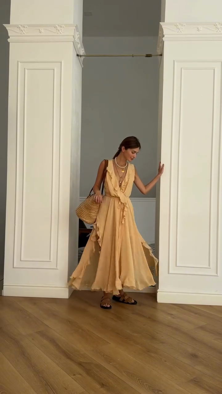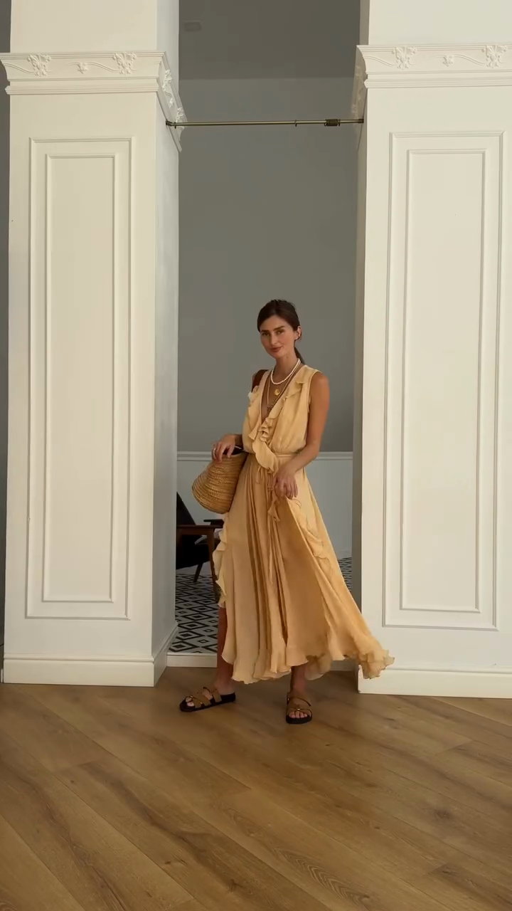 Cream Ruffled Sleeveless Maxi Dress