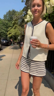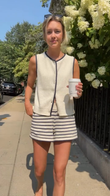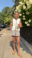 Cream Sleeveless Knit Vest and Striped Shorts Set