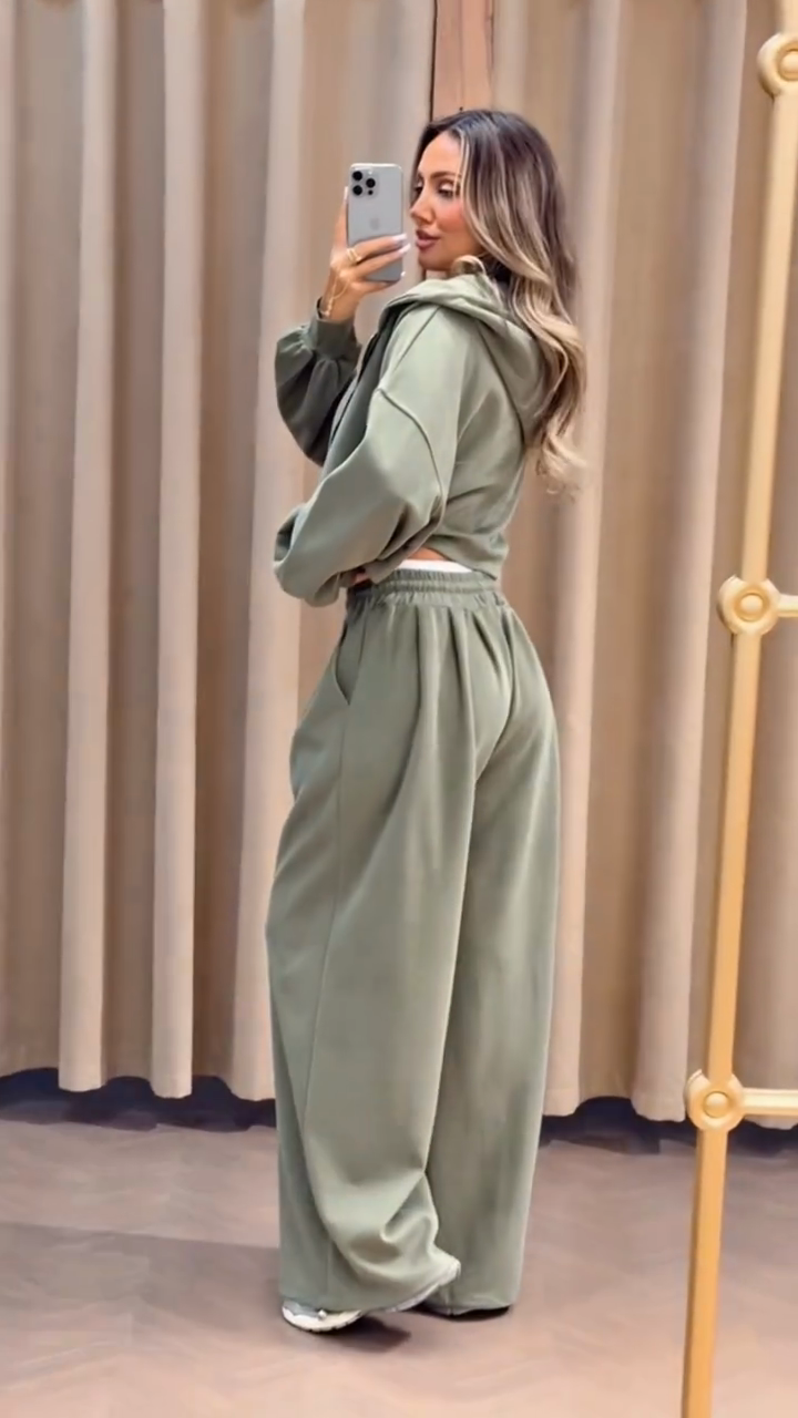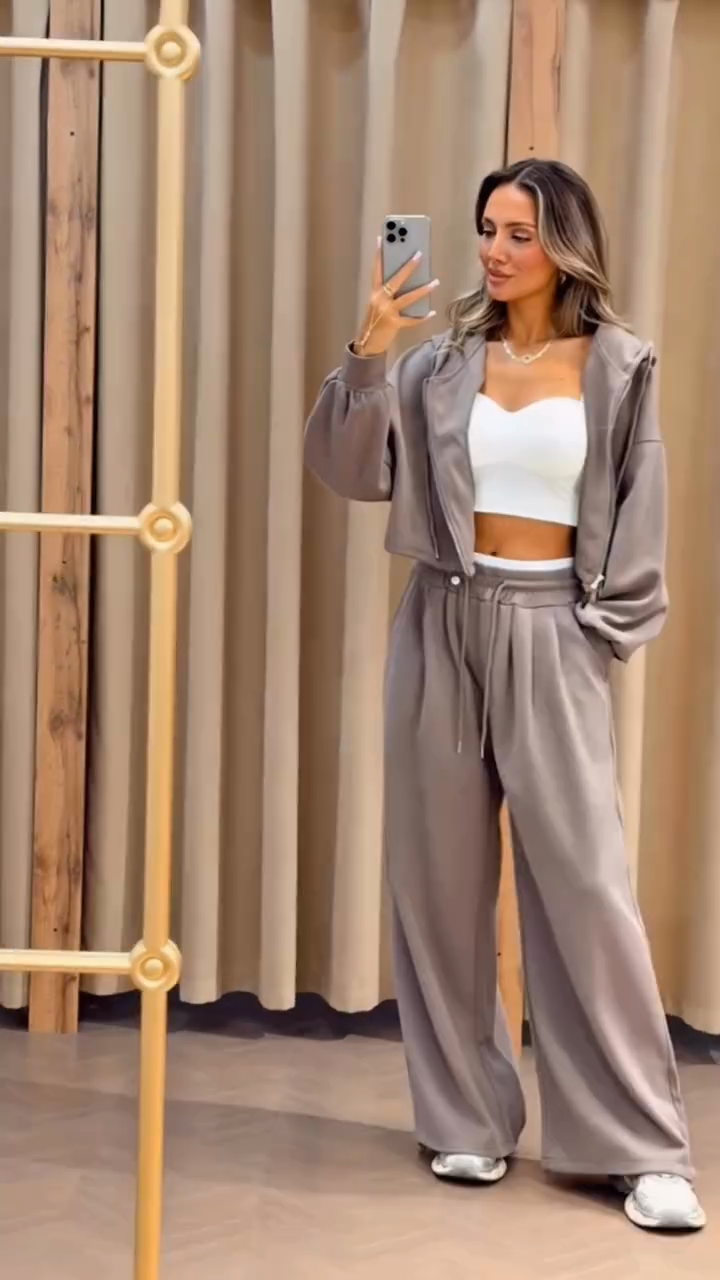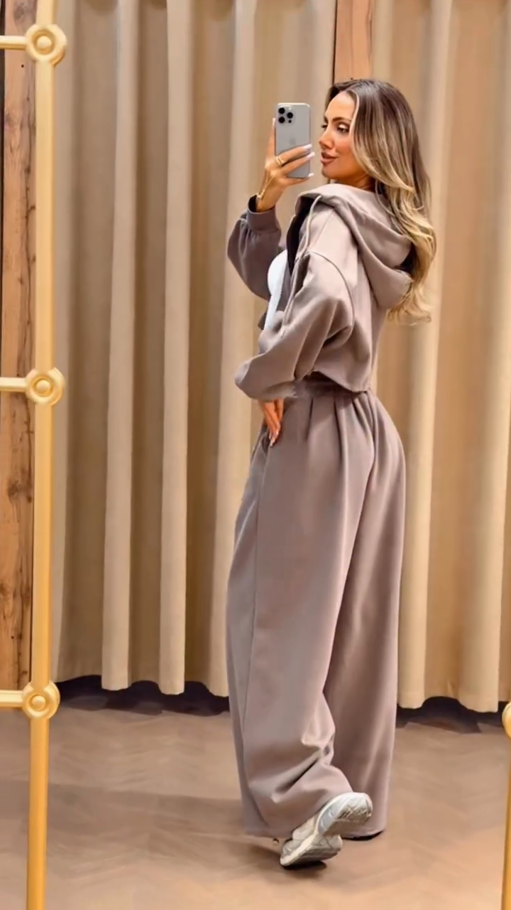 Upgrade your loungewear or street style with Cropped Hoodie & Wide-Leg Pants Set. The relaxed cropped hoodie pairs perfectly with flowy wide-leg pants for a comfy, on-trend look. Ideal for casual outings or cozy days. Lightweight fabric ensures fast page load. Shop now for an easy, stylish ensemble!