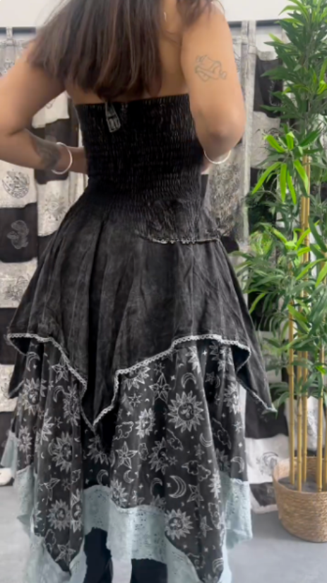 Lace - Up Corset Dress with Celestial Motifs