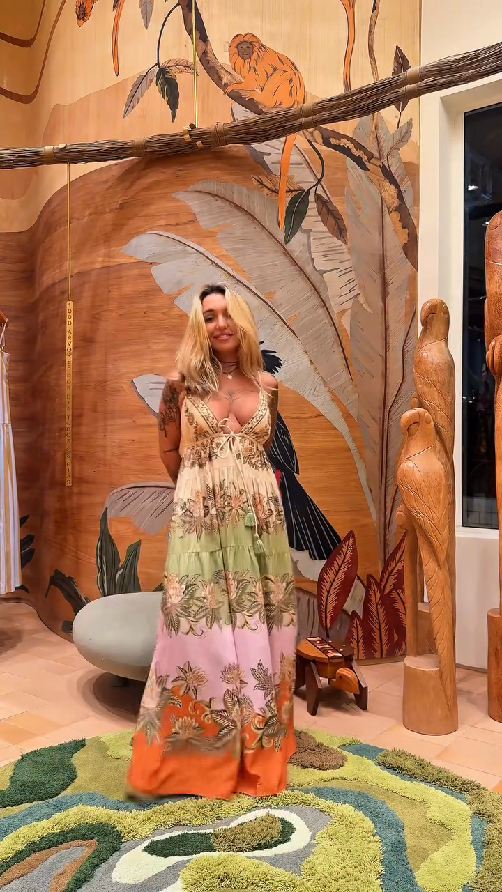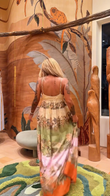 Deep V Neck Colorblock Floral Maxi Dress