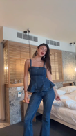 Denim Peplum Corset Top and Flared Jeans Set