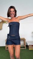 Denim Strapless Corset Top and Shorts Set