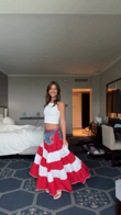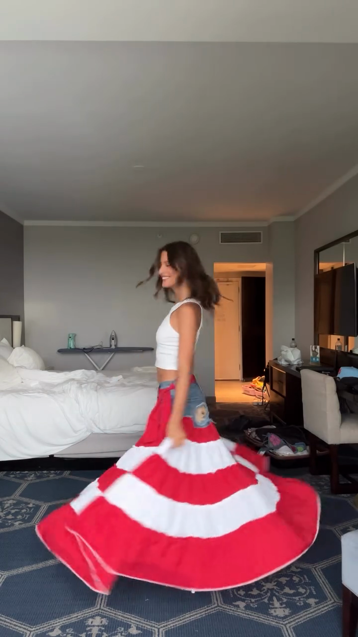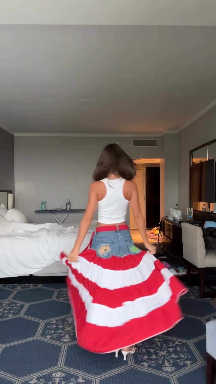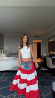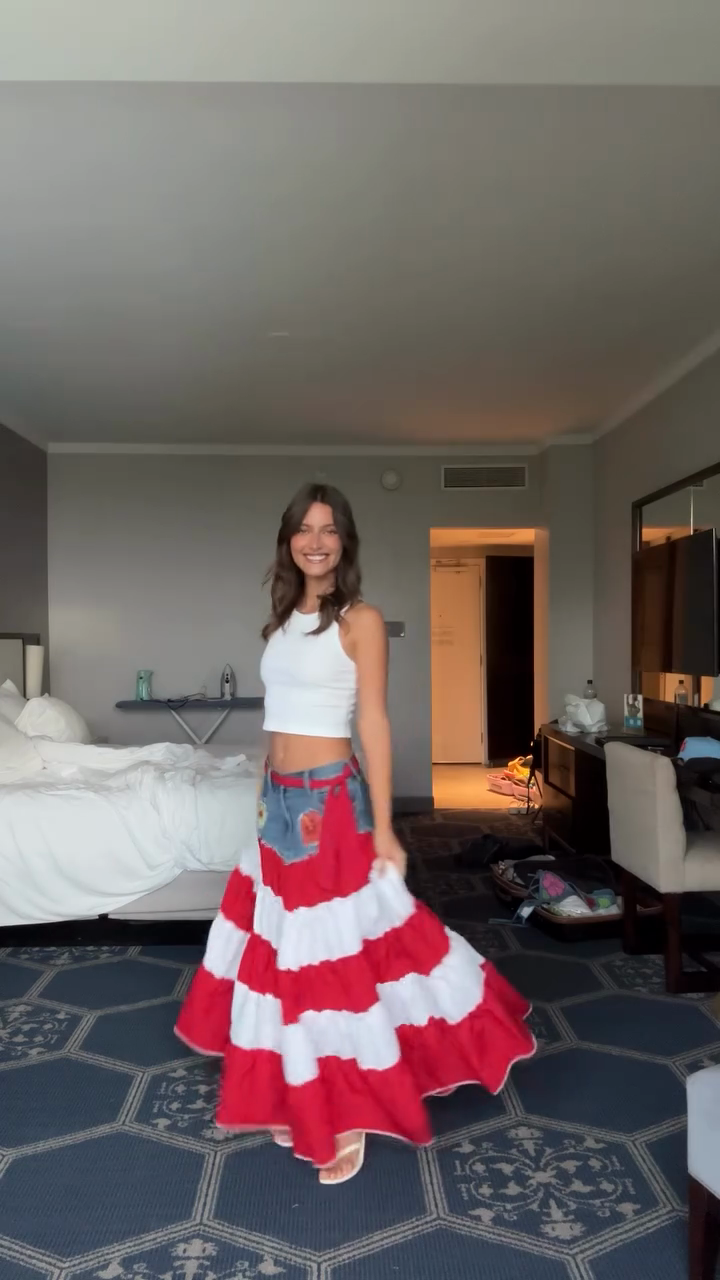 Denim Waistband Tiered Maxi Skirt with Floral Embroidery