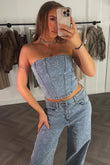 Diamante Rhinestone Denim Corset Top Denim Blue