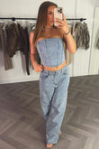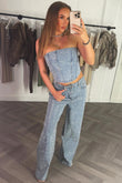 Diamante rhinestone denim corset top. This rhinestone denim corset top is a NEED not want babe. Featuring denim bandeau corset top with rhinestone diamante , premium quality. Style this denim bandeau rhinestone top with matching outfit to complete the look we are obsessed with. This rhinestone diamante denim corset top is also available in other colours.