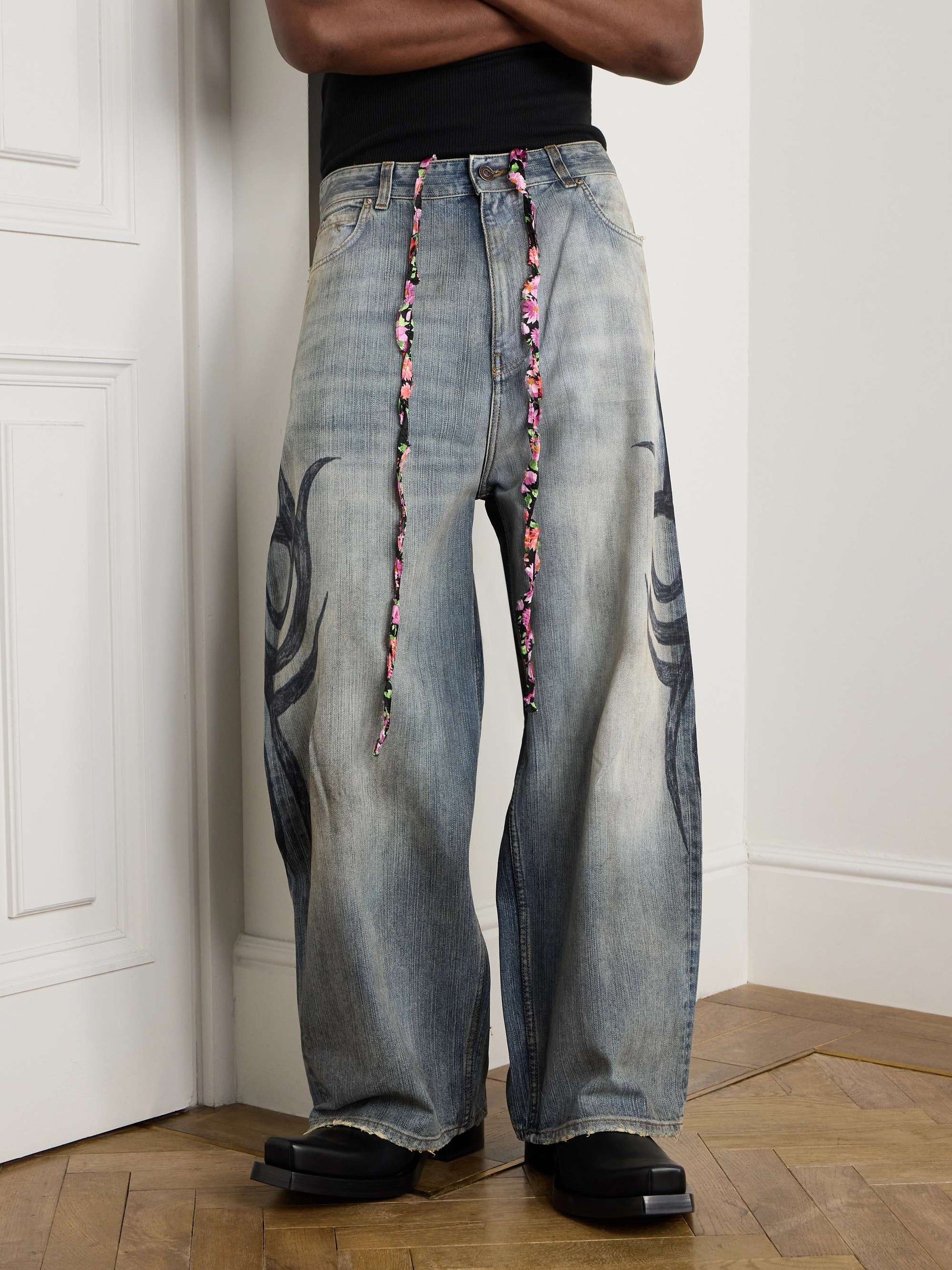 Distressed Denim Wide - Leg Jeans