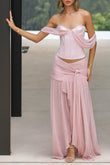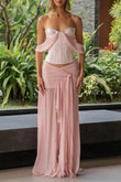 Drop Shoulder Corset Semi Sheer Slit Maxi Skirt Set