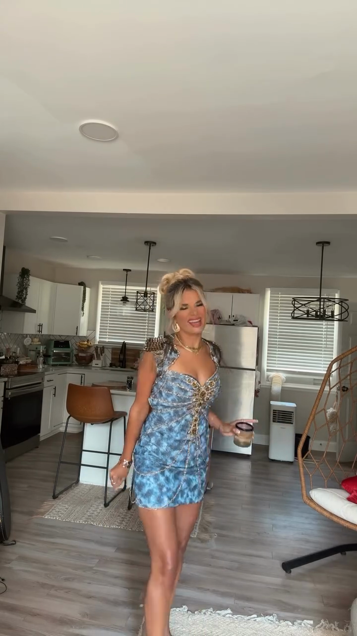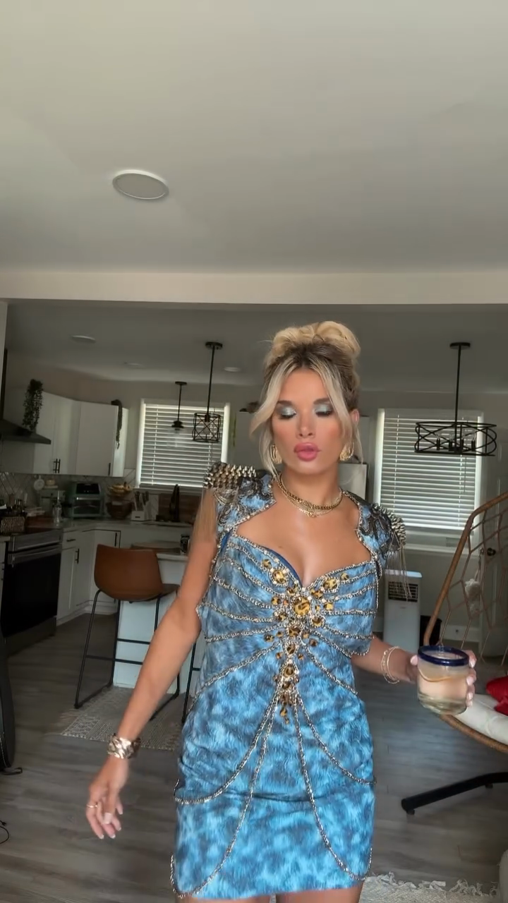 Embellished Blue Mini Dress