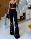 Embellished Crop Top and Flared Pants Set