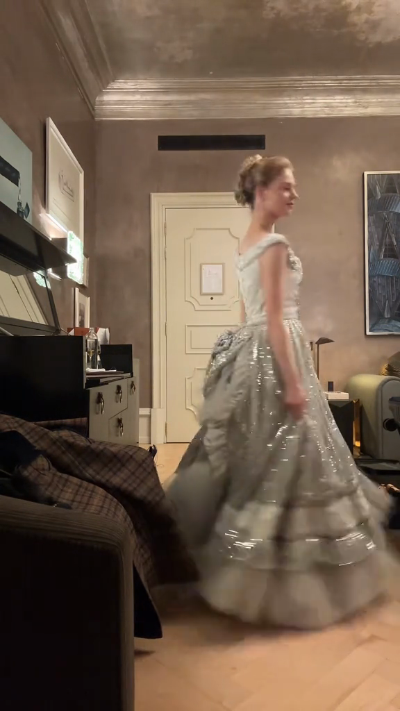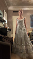 Embellished Silver - Toned Evening Gown
