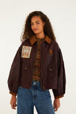 Embroidered Brown Cropped Jacket