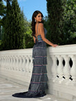 Embroidered Fringe Maxi Dress with Slit