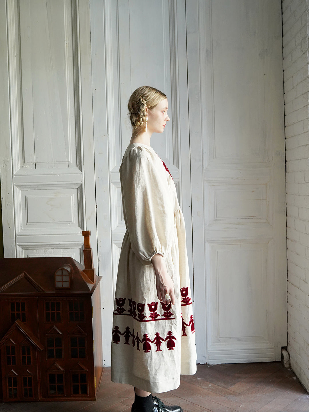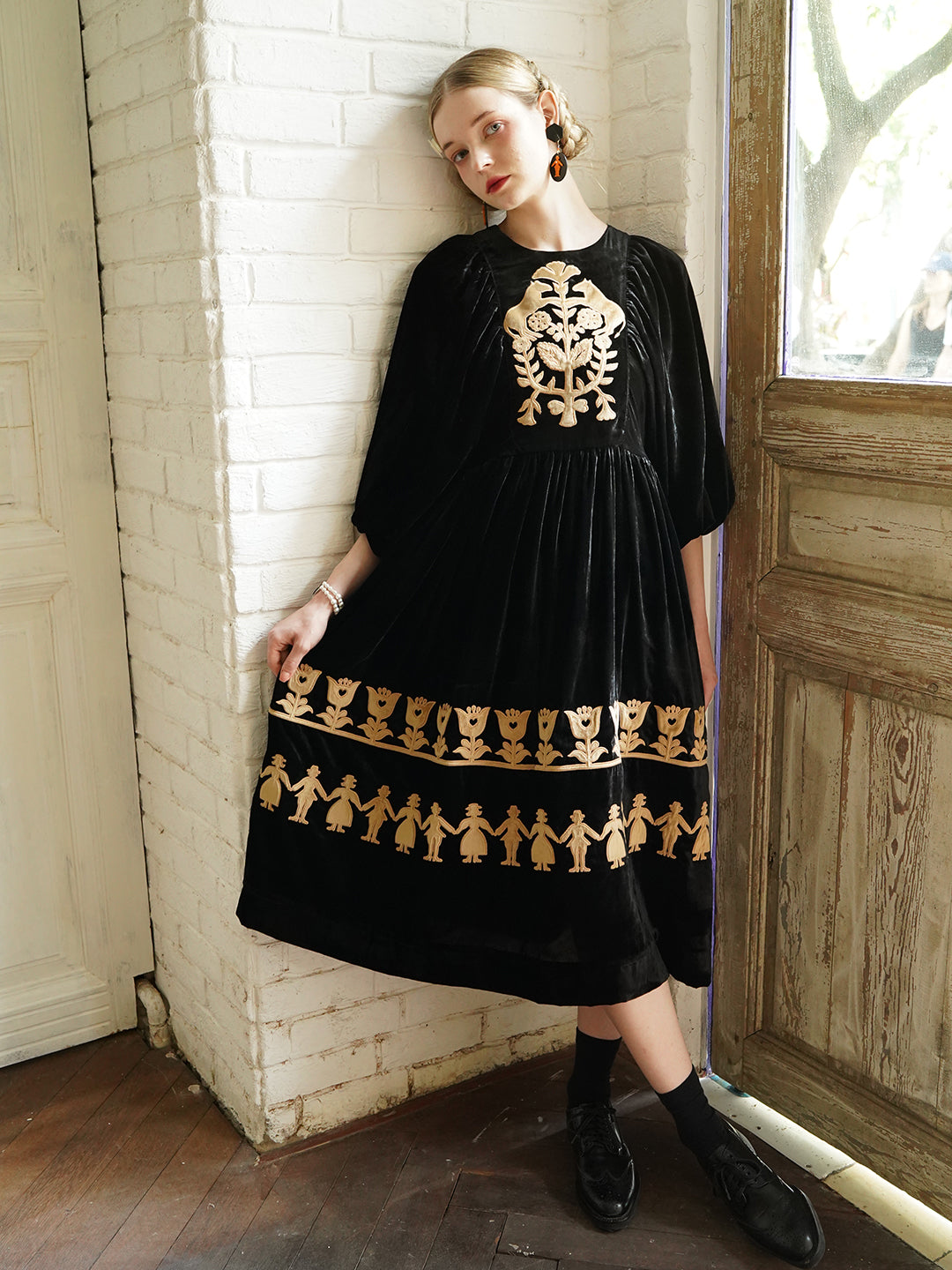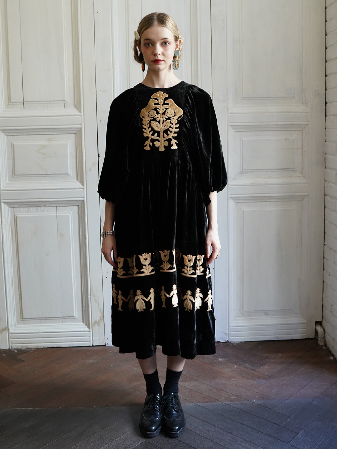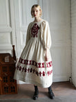 Embroidered Maxi Dress with Puff Sleeves