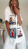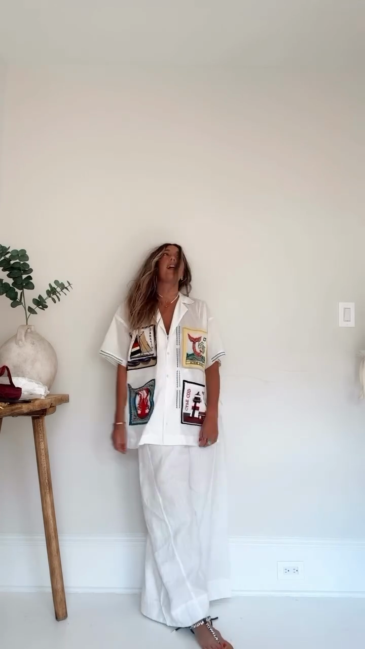 Embroidered Patch Sheer Shirt & Wide - Leg Pants Set