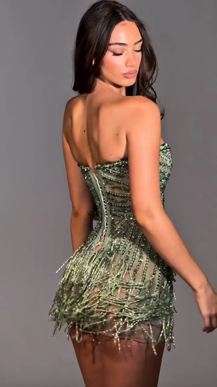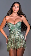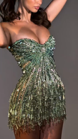Emerald Green Sequin Fringe Strapless Mini Dress