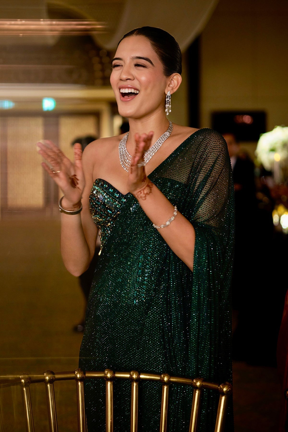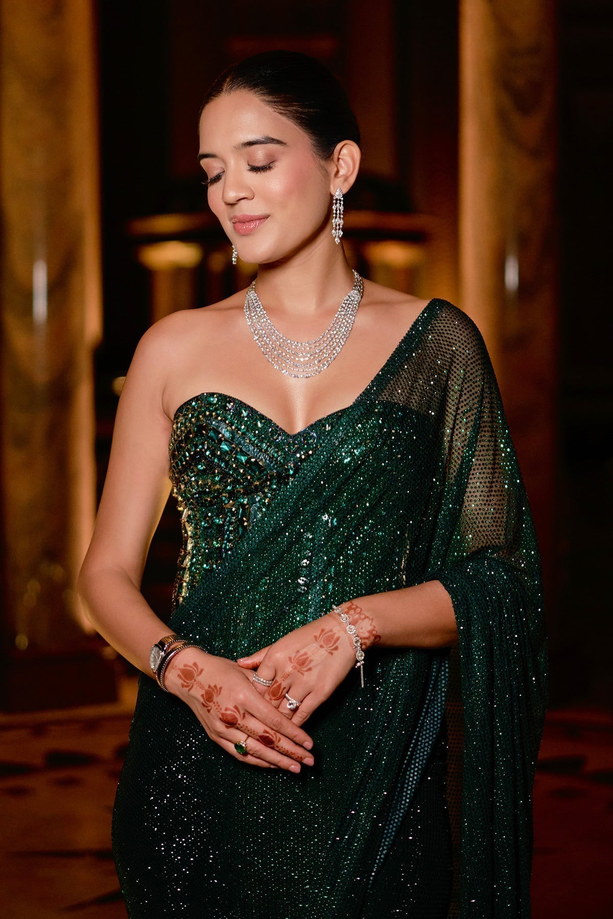 Emerald Green Sequin Saree Set