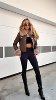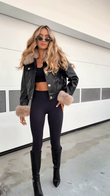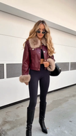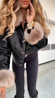 Faux Leather Jacket with Fur Trim