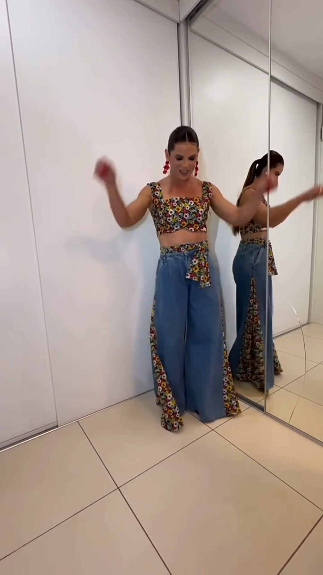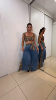Floral Crop Top and Wide - Leg Denim Pants Set