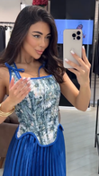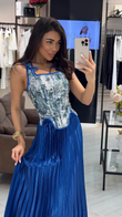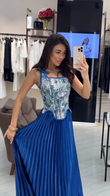 Floral - Embroidered Corset Top & Pleated Maxi Skirt Set