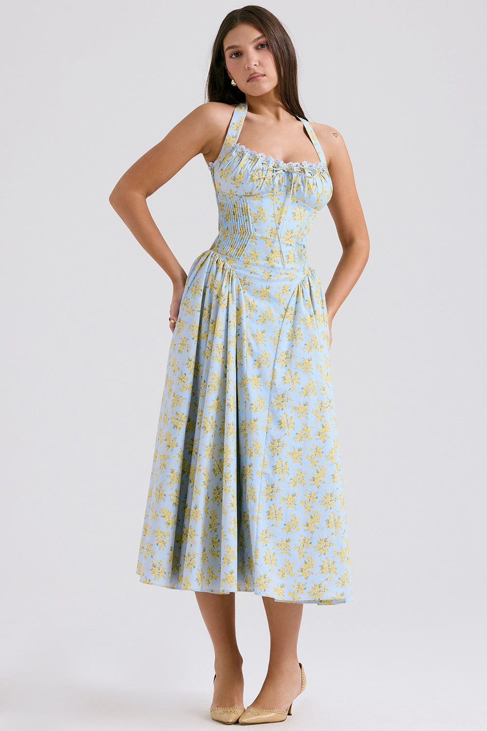 Floral Halter Neck Midi Dress