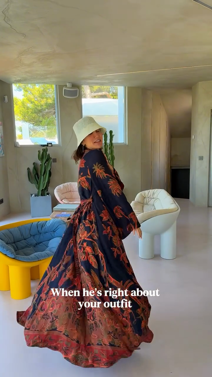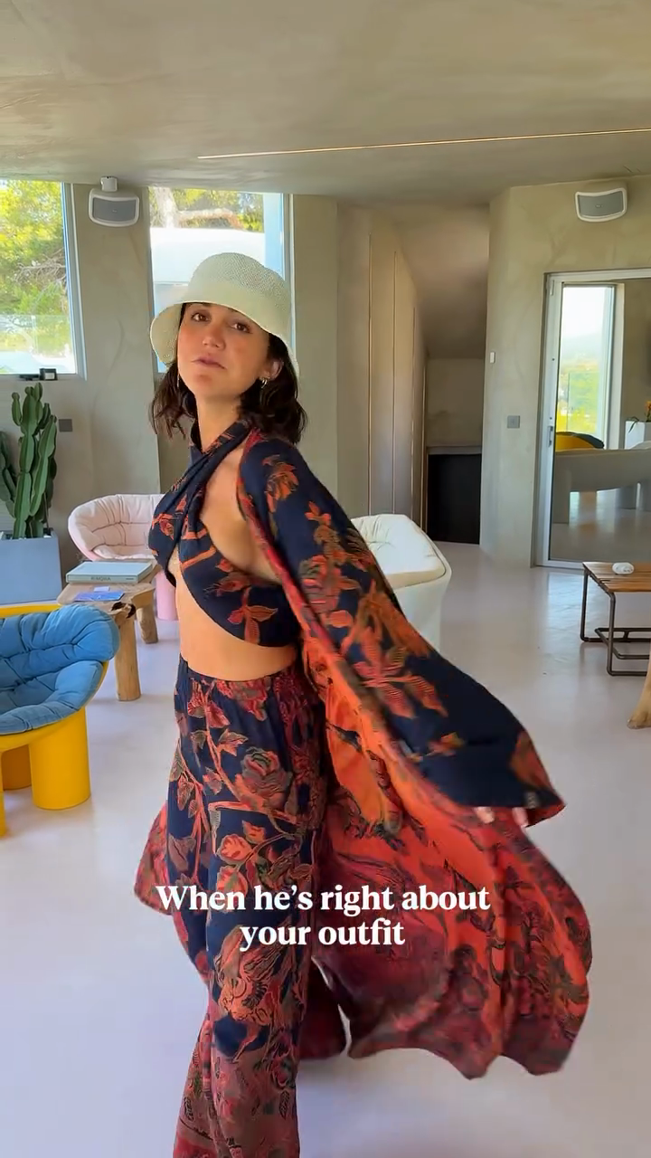 Floral Print Kaftan - Style Top, Crop Bra and Wide - leg Pants Set