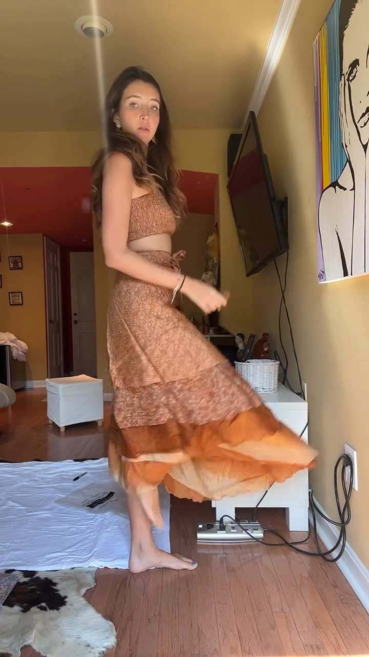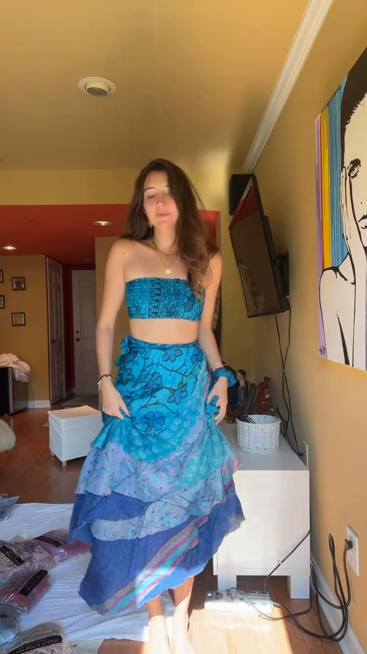 Floral Print Strapless Crop Top and Tiered Maxi Skirt Set