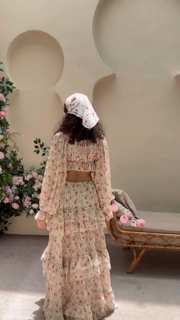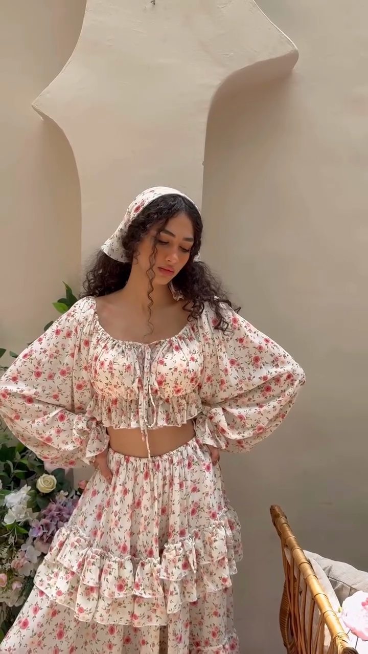 Floral - Printed Ruffled Crop Top & Tiered Maxi Skirt Set